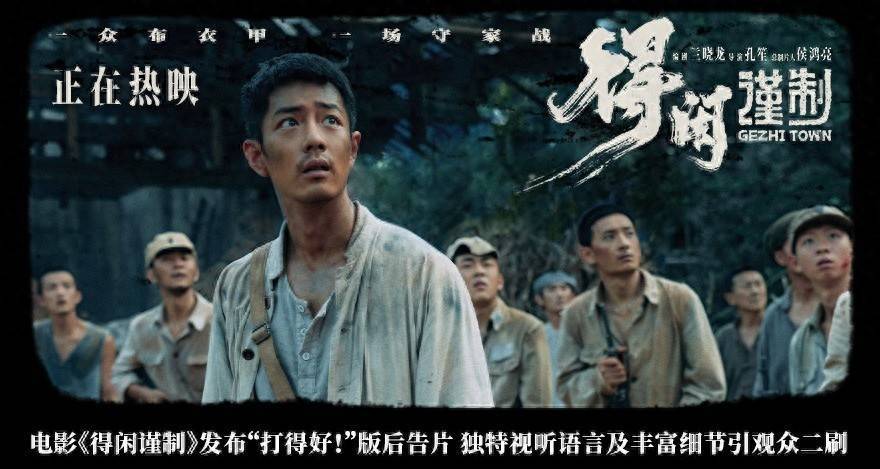 电影《得闲谨制》讲述了一群老百姓誓守家园拼死抗日的故事。全新发布的“打得好!”版后告片中,日寇突袭戈止镇,老百姓措手不及,怎么打?工匠莫得闲(肖战 饰)的“就是打”三个字掷地有声。于是当日本侦察兵大河原(尹正 饰)被俘,肖衍(彭昱畅 饰)、梅德福(甘昀宸 饰)、麻郭富(阿如那 饰)和康灵宝(周思羽 饰)等人轮番上阵,给了侵略者一记记响亮的耳光!该场景中的岳飞庙也体现出创作者的匠心巧思,其破败的外观,一如战争给当时的中国大地留下的满目疮痍,但岳飞的精神与气节今犹在,戈止镇百姓就在随后的守家战中展现得淋漓尽致。本支后告片亦让观众感受到影片别具一格的视听语言。编剧兰晓龙和导演孔笙将诙谐幽默融入严肃叙事,并加入黑白默片、民国歌曲等元素,赋予战争类型电影耳目一新的质感。编剧兰晓龙表示,故事的切口很小,运用这些方式可以让故事层次更饱满,不断扩大观众的想象空间。同期发布的“何为戈止镇”版海报全景式地展现了戈止镇的众生相,这座藏于山水之间的荒废小镇被逃难至此的老百姓改建成了新的家园。他们种植粮食、喂养禽畜,“拖家带口朝天作吼 携老扶幼戈止为镇”的对联似是这份安宁生活的写照,然而横批“乱世人太平鬼”却昭示着所谓“戈止”,只是他们这些“乱世人”难以企及的愿望。海报上方日寇的飞机坦克已将兵戈之乱带到了戈止镇,他们唯有去打这场守家战,才能赢得真正的太平。